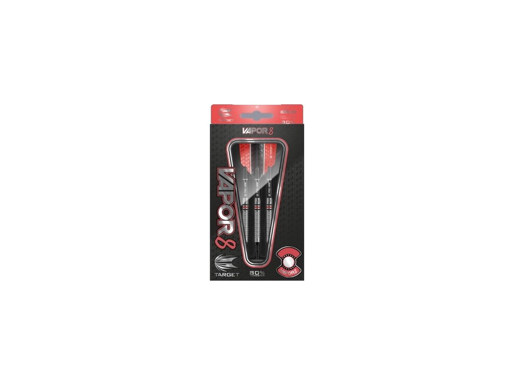 Tyto softové šipky s 80% wolframem jsou vyrobeny s vysokým výkonem tělíčka (barrelu) a se skvělým vyvážením šipky. Řada šipek VAPOR 8 zahrnuje širokou škálu tvarů, hmotností a vzorů barrelu ve výrazné červeno/černé barvě.