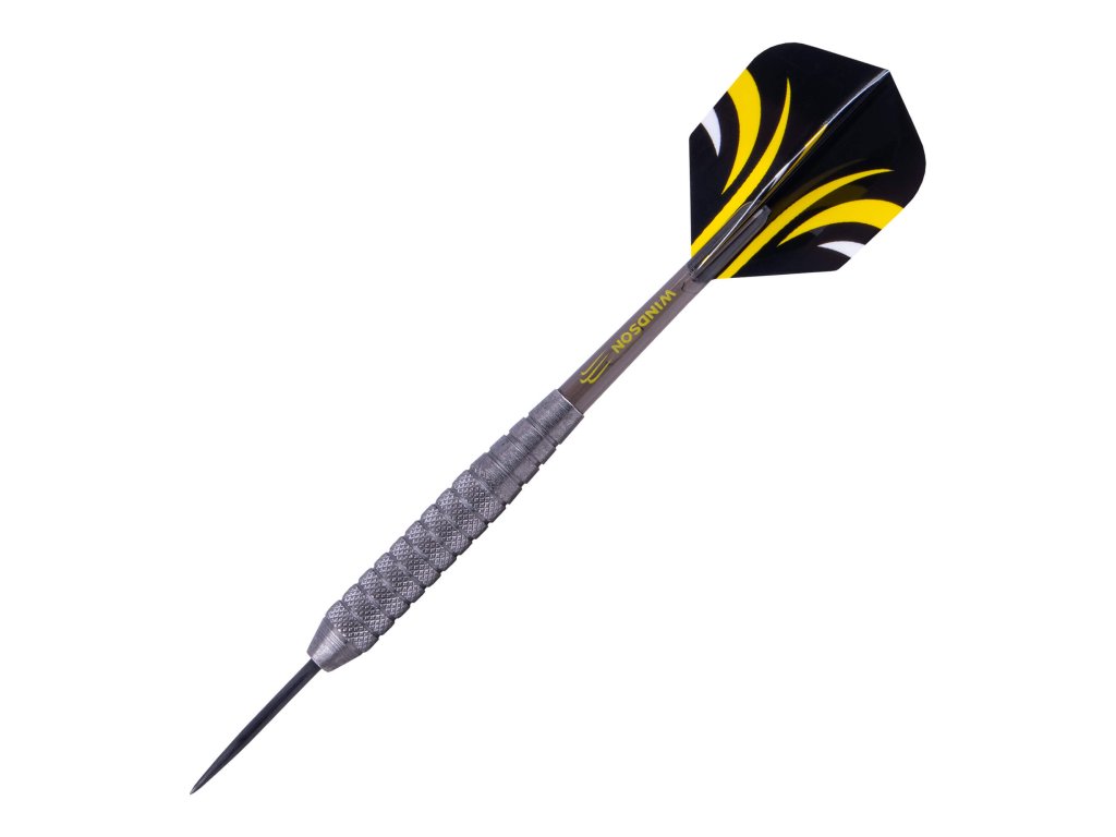 Šipky se skládají ze železných barelů s ocelovými hroty, neonově žlutých-černých letek a násadek ve stejném černo-žlutém stylu.