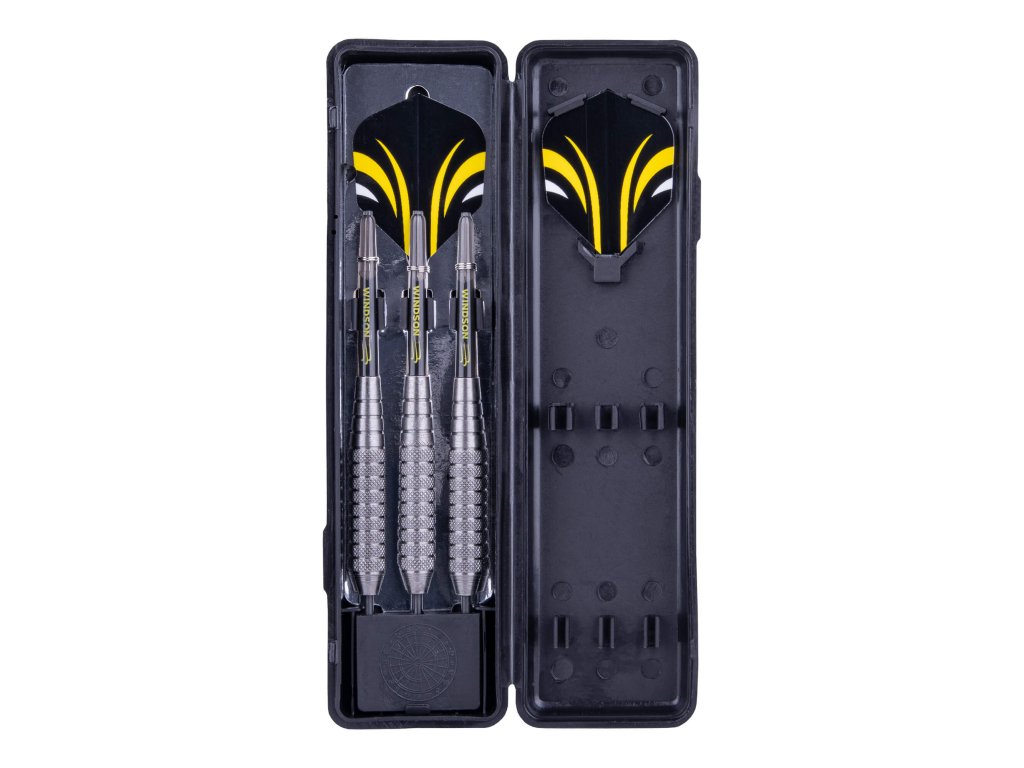 Balení obsahuje: 3ks železných 20g barelů s ocelovými hroty, 3ks nylonových násadek, 3ks letek a 1 pouzdro.