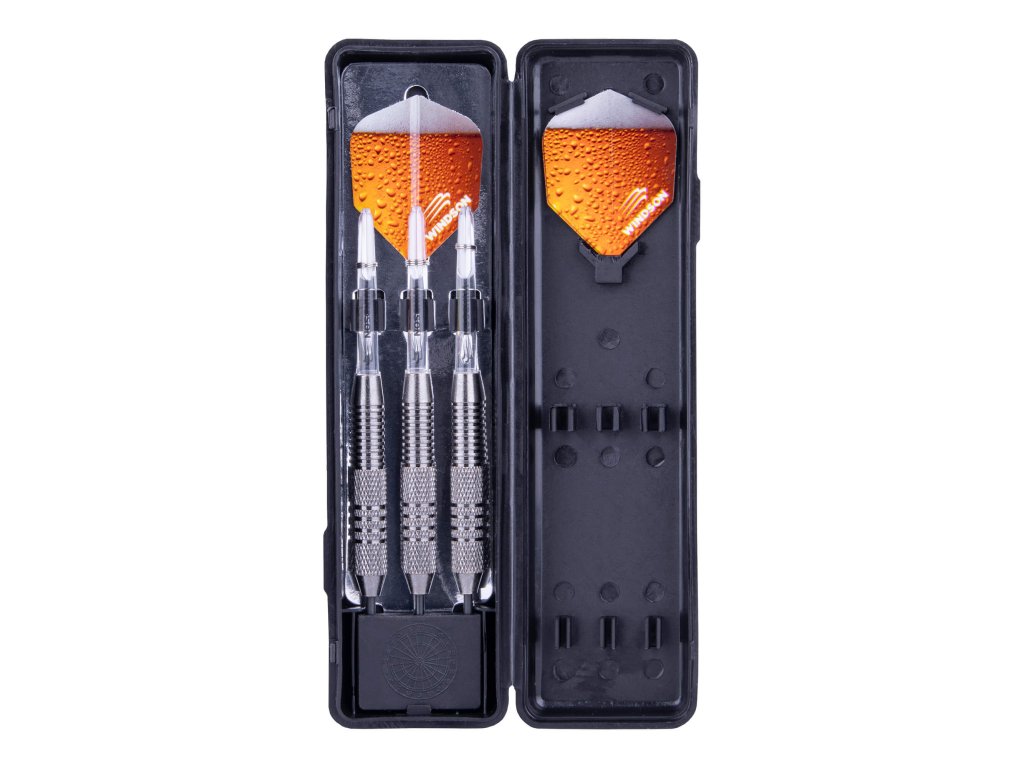 Šipky se skládají z mosazných kovových těl s ocelovými hroty, transparentních nylonových násadek a PVC letek.